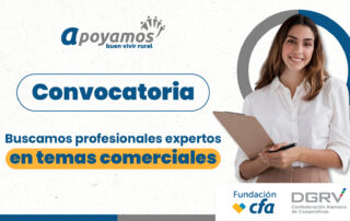 Desde la Fundación CFA en convenio con la Confederación Alemana de Cooperativas – DGRV, se viene implementando el Proyecto Apoyamos cuyo objetivo es “Fomentar actividades económicas locales”. Buscamos profesionales expertos en temas comerciales para capacitar y asesorar a las organizaciones y redes de productores [...]